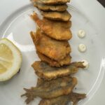 Farinata, frittura di pesce, verdure fritte, panissa, formaggi e pecorini stagionati serviti con miele e confettura di fichi.